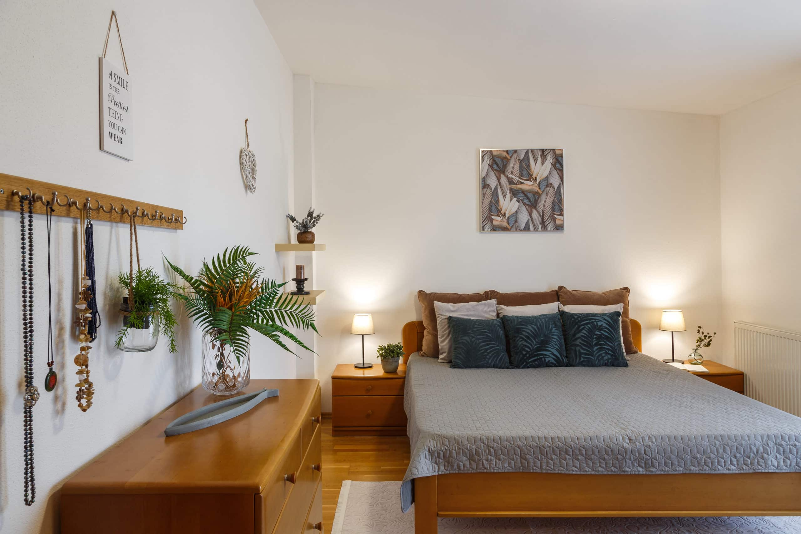 Pri home stagingu spálne sme sa držali pravidla „menej je viac“, čím sa nám podarilo vytvoriť príjemný vzdušný čistý priestor. Byt sme kompletne pripravili na najlepšiu prezentáciu potenciálnym kupujúcim.